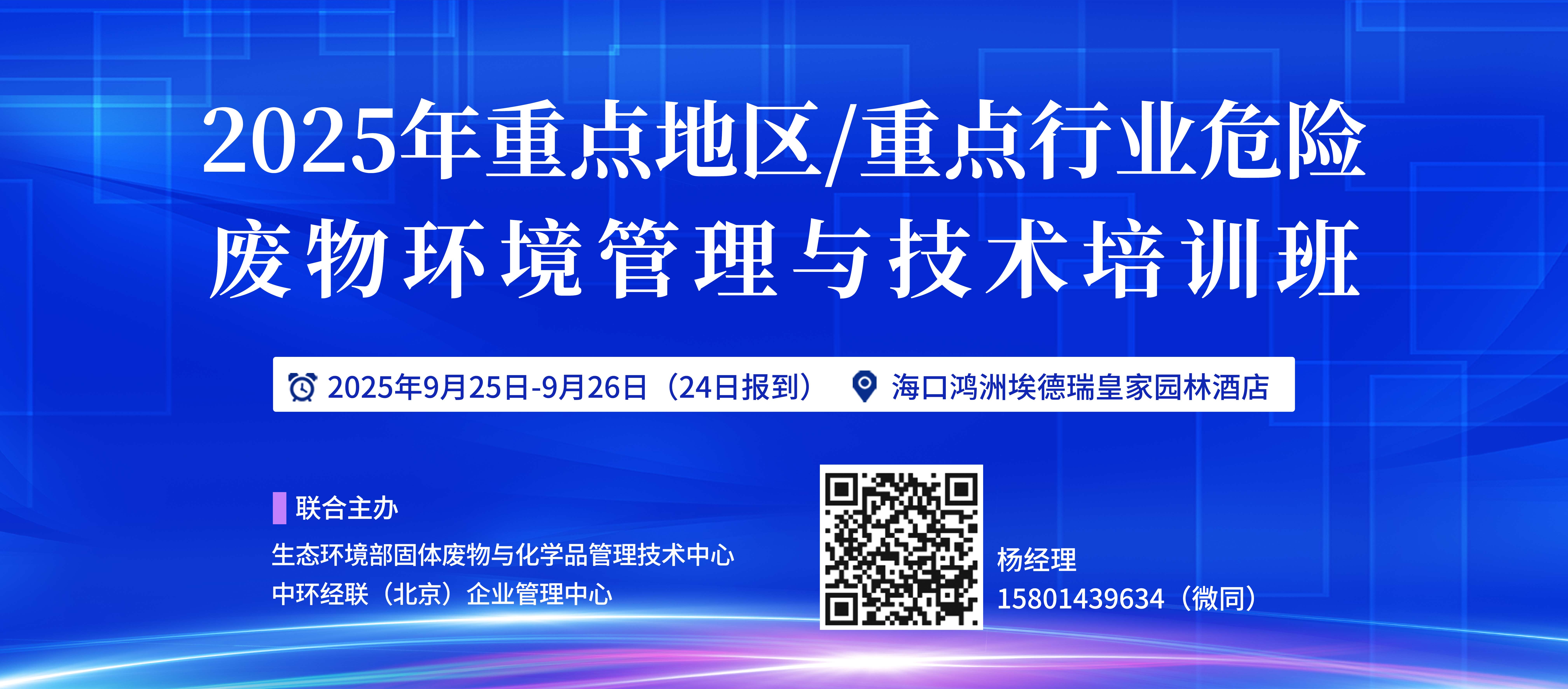 • 【9月·海口】2025年重點地區(qū)/重點行業(yè)危險廢物環(huán)境管理與技術(shù)培訓(xùn)班 重磅來襲!